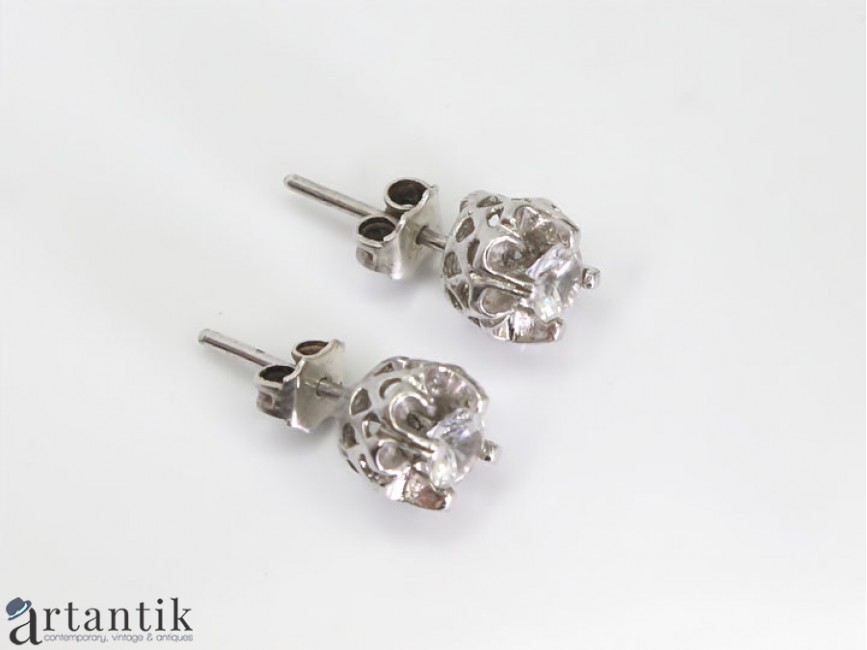 Cercei Tip Stud Aur Alb 18kt Cu Diamant Rotund Briliant In Setare